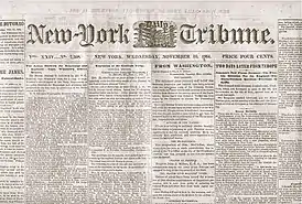 «Нью-Йорк трибюн»[3] (анг. «New-York Tribune» переводится как «Нью-йоркская трибуна») — американская ежедневная газета, впервые издававшаяся журналистом и политиком Хорасом Грили с 1841 года. В 1842—1866 называлась «New-York Daily Tribune». Определённый период времени занимала лидирующие позиции среди американских печатных СМИ. В 1924 году объединилась с «New York Herald», в результате чего был образован ежедневник «New York Herald Tribune». Последний издавался до 1967 года.