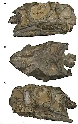 ![]() Череп в правой латеральной, дорсальной и левой латеральной проекциях | |||||||||||||||||||||||||||||||||||||||||