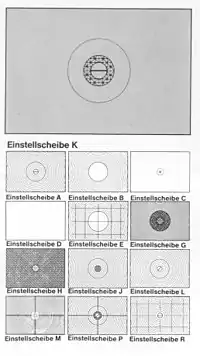 - P — аналогичен типу K, но с наклоном клиньев Додена под углом 45°[56]. На поле нанесёно перекрестие;