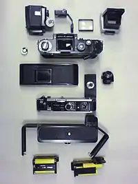 Кроме пентапризмы DE-1 были доступны ещё три типа видоискателя без экспонометра: шахта DW-1 и вертикальная лупа с шестикратным увеличением DW-2, а также специальный видоискатель для съёмки с движения DA-1[47][31]. Последний обеспечивает видимость полного кадра с расстояния от глаза до окуляра 6 сантиметров, и допускает полноценное визирование в защитных очках или подводных масках.