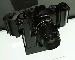 - Съёмная задняя крышка может заменяться несколькими типами датирующих крышек или кассетой на 250 кадров плёнки. В 1991 году Kodak выпустил для Nikon F3 цифровой задник DCS Digital Film Back с ПЗС-матрицей разрешением 1,3 мегапикселя для цифровой фотографии[20]. С этим задником, установленным вместо крышки, фотоаппарат становился цифровой зеркальной камерой семейства Kodak DCS 100, первого на рынке оборудования для профессиональной фотожурналистики[21];