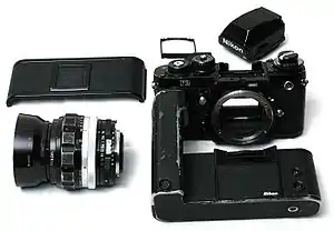 - Устройство камеры позволяет фиксировать зеркало в верхнем положении для возможности использования сверхширокоугольных объективов с коротким задним отрезком и уменьшения сотрясений[* 2]. Механизм предварительного подъёма и репетира диафрагмы полностью унаследован от модели F2;