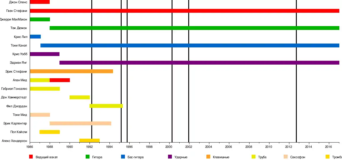 - Гвен Стефани — вокал (1987 — настоящее время), бэк-вокал (1986—1987)