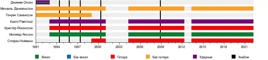 - Генрик Санвиссон (Henrik Sunvisson) - бас-гитара (1991-1999)