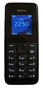 Nokia 105 - это дешевый телефон, сделанный Nokia. Телефон изначально был выпущен в 2013 году для людей на развивающихся рынках, которым по-прежнему был нужен свой первый мобильный телефон. Nokia 105 был впервые представлен на Mobile World Congress в 2013 году. Nokia 105 может работать до 35 дней в режиме ожидания за один заряд батареи и до 12,5 часов в режиме разговора. Кроме того, он включает в свои функции фонарик и FM-радио.[2]