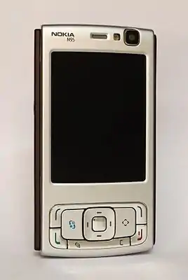 Nokia N95 — смартфон, произведенный Nokia в составе линейки портативных устройств Nseries. Анонсированный в сентябре 2006 года, он был выпущен на рынок в марте 2007 года. N95 работал под управлением S60 3rd Edition на Symbian OS v9.2. Он имеет двусторонний выдвижной механизм, который можно использовать для доступа либо к кнопкам воспроизведения мультимедиа, либо к цифровой клавиатуре . Сначала он был выпущен в серебристом цвете, а затем в черном цвете с ограниченным тиражом в золотом и пурпурном цветах. Стартовая цена N95 составляла около €550 (около US$730, GB£370).