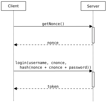 Сервер генерирует случайный код (nonce) и посылает его клиенту. Клиент использует полученный код, добавляя его к паролю до шифрования, шифрует полученную строку, и возвращает получившееся сообщение серверу. Сервер расшифровывает сообщение, из полученной строки «вычитает» известный ему nonce и сверяет пароль. Данный nonce используется один и только один раз, все последующие передачи паролей с тем же nonce будут отвергнуты сервером, поэтому злоумышленник, перехватив сообщение с зашифрованным паролем, не сможет получить доступ, повторно отправляя перехваченное сообщение на сервер.