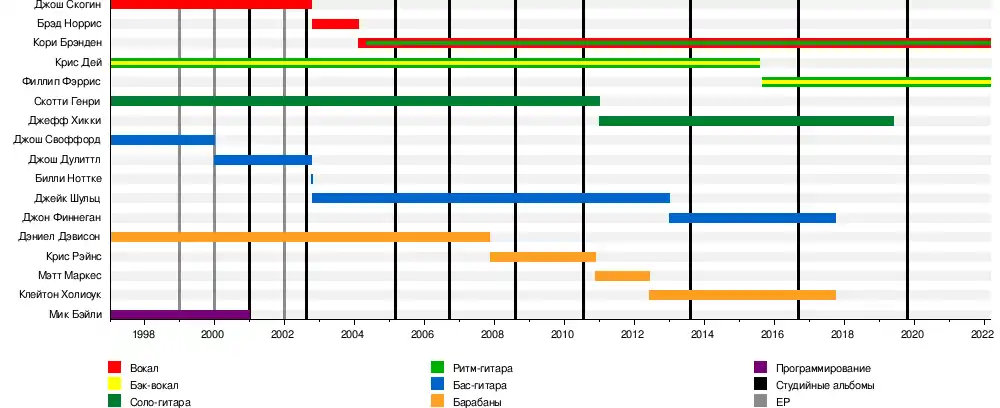 - Крис Дей — бэк-вокал, ритм-гитара (1997—2015)[34]