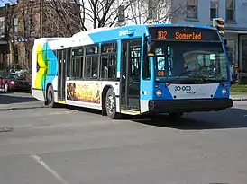 Автобус LFS Novabus в Нью Йорке - вид сбоку.