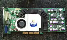 В 2001 году выпущен чип NV20, в котором внедрена технология LMA (Lightspeed Memory Architecture) — большое число контроллеров памяти с уменьшенной пропускной способностью. Среди новшеств также были более быстрая память SDRAM, поддержка пиксельных и вершинных шейдеров, поддержка MSAA-сглаживания и работа с Direct3D 8. На этом чипе были основаны карты линейки GeForce 3, а также графический процессор игровой консоли Xbox от Microsoft. В начале 2002 года компания представила линейку GeForce 4. Бюджетные карты в этой линейке были основаны на чипсетах NV17, NV18 и NV19, по сути являвшихся модификациями NV11, и имели большой коммерческий успех. Позднее фирма выпустила более мощные карты на чипе NV25 — усовершенствованной версии NV20. В ответ на разработки Nvidia компания ATI представила флагманский процессор R300, в котором благодаря удвоению числа всех вычислительных модулей добилась превосходства в производительности над GeForce 4. В конце 2002 года компания выпустила процессор NV30, который использовала в 5-м поколении GeForce — GeForce FX. Несмотря на то что Nvidia отстала от ATI в выпуске DX9-совместимого процессора, компания сравнялась с конкурентом за счёт новых технологий — поддержки шейдерной модели версии 2.0a, новых алгоритмов сглаживания и фильтрации, интерфейса PCI Express и памяти формата DDR2[35]. Спустя несколько месяцев после NV30 вышел NV35, который получил дополнительный блок вершинных шейдеров, усовершенствованные блоки пиксельных шейдеров, более широкую шину памяти и технологию визуализации теней UltraShadow[36]. В последовавшем 2005 году представлен чип NV40 и 6-е поколение GeForce, флагманская модель которого за счёт новых технологий почти вдвое превзошла по производительности модели 5-го поколения. GeForce 6 получил поддержку DirectX 9.0c и шейдерной модели версии 3, аппаратную поддержку декодирования видео в форматах H.264, VC-1, WMV и MPEG-2, а также возможность параллельного использования нескольких карт через программно-аппаратную связку SLI. Бюджетные карты GeForce 6 были основаны на чипе NV43, упрощённой и недорогой в производстве версии NV40[14][34][37].