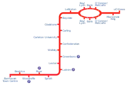 Вплоть до 14 сентября 2019 года данная линия была единственной линией городского рельсового транспорта. Это неэлектрифицированная (дизельная) однопутная наземная линия длиной 8 км с 5 станциями, идущая с севера на юг Оттавы. По ней с интервалом 15 минут курсируют два (из трёх имеющихся в парке) трёхвагонных дизель-поезда, отходящие от конечных станций Бэйвью и Гринборо навстречу друг другу каждые 15 минут (в 00, 15, 30, 45 минут каждого часа) и разъезжающиеся на средней станции Карлтон. Линия выделена и не пересекается с городским и прочим транспортом, а станции находятся, как правило, в непосредственной близости от транзитных терминалов скоростных линий городского автобуса.