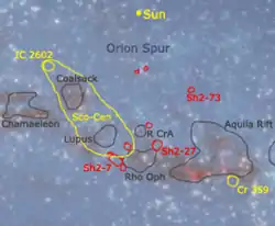 OB-ассоциация Скорпиона — Центавра своим происхождением обязана процессам звездообразования, происходивших в комплексах молекулярных облаков за последние 20 млн лет. Комплекс подобных молекулярных облаков находится в непосредственной близости от OB-ассоциации и включает в себя молекулярное облако Ро Змееносца, тёмную туманность Трубка, молекулярное облако Барнард 68, Угольный Мешок, а также тёмные туманности в созвездиях Хамелеона, Волка, Южной Короны, (все на расстояниях ~ 120—200 парсек) и несколько ассоциаций молодых звёзд на периферии, в том числе, ассоциацию Эпсилон Хамелеона (возраст ~ 3-5 млн лет), ассоциацию Эты Хамелеона (возраст ~ 7 млн лет), ассоциацию TW Гидры (возраст ~ 8 млн лет), движущуюся группу звёзд Беты Живописца (возраст ~ 12 млн лет) и, возможно, рассеянное звёздное скопление IC 2602 (возраст ~ 30-50 млн лет)[4].