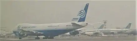 17 декабря 2007 года. Boeing 747-200F авиакомпании Ocean Airlines в аэропорту Алма-Аты, Казахстан. Бортовой номер I-OCEA