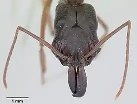 Среднего размера муравьи (около 1 см) темно-коричневого (почти чёрного) цвета. Усики длинные. Глаза расположены в переднебоковых частях головы. Затылочные углы головы увеличенные, в них прикрепляются мощные мышцы захлопывающихся почти мгновенно длинных челюстей. Жвалы прикрепляются в средней части передней поверхности головы, почти рядом друг с другом. Стебелёк между грудкой и брюшком состоит из одного членика (конусовидного петиолюса) с заострённой верхней частью[1]. Вид был впервые описан в 1892 году итальянским мирмекологом Карло Эмери по рабочим особям[4]. Крылатые самки и самцы были впервые описаны в 1919 году американским мирмекологом Уильямом Мортоном Уилером[5].