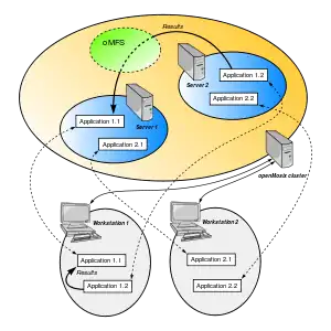 Кластер ведёт себя подобно SMP-машине (за исключением любых видов разделяемой памяти). При этом возможно наращивание до тысяч узлов, которые тоже могут быть SMP-машинами. Добавление новых узлов возможно параллельно работе кластера, добавленные ресурсы будут задействованы автоматически. openMosix также предоставляет оптимизированную файловую систему (oMFS) для HPC-приложений, которая, в отличие от NFS, поддерживает кэширование, отметки о времени и ссылки.