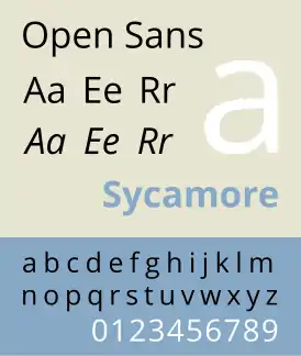 Open Sans — семейство свободных шрифтов, разработанных Стивом Мэттисоном по заказу Google. По данным Google, он был спроектирован с «прямым штрихом, открытыми формами и нейтральной, но дружественной внешностью» и «оптимизирован для удобочитаемости при печати, в веб- и мобильных интерфейсах».[1] Его дизайн практически идентичен Droid Sans, за исключением широких символов и включением курсивных вариантов. В то время как Droid Sans используется, в основном, в графических интерфейсах смартфонов на платформе Android, Open Sans используется на некоторых страницах Google, а также для печати и веб-рекламы.