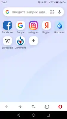 ![]() Скриншот экспресс-панели браузера Opera Mobile для Android | |