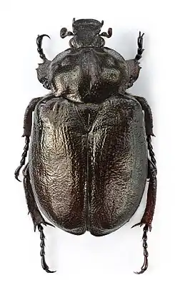 Большие жесткокрылые, длиной 25—40 мм[2]. Тело уплощённое, чуть удлинённое, немного дорсовентрально суженное, имеет красновато-коричневато-чёрный, смоляно-чёрный, чёрный окрас с металлическим отблеском или без него, более или менее блестящее. Голова небольшая. Щупики с короткими, отделёнными тремя-семью члениками и небольшим валиком. Диск переднегрудки явственно уже основания надкрылий. Щиток большой. Надкрылья широкие, их общая ширина немного меньше их длины, слабо приплюснутые с хорошо заметными плечевыми углами. Ноги крепкие, утолщённые, не длинные. Коготки простые. Половые органы с парамерами, вершинная поверхность которых с горбовидным выростом[2].
