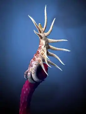 При внимательном осмотре окаменелостей исследователи обнаружили следы соединений кальция в когтях задних трёх пар ног, а также вокруг рта и хоботка. Помимо этого, были обнаружены следы кальция в кишечнике, однако это могли быть фрагменты оболочки, прилипшие к пище, и не являвшиеся органами животного[1].