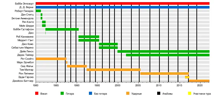- Роберт Джозеф «Бобби Блиц» Эллсворт — вокал (1980 — наше время)