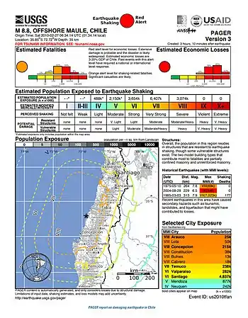 ![]() Пример отчёта системы PAGER Геологической службы США |