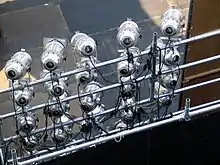 Различают 4 типа применяемых в прожекторе ламп — с очень узким (VNSP), узким (NSP), средним (MFL) и широким углом (WFL) раскрытия луча.