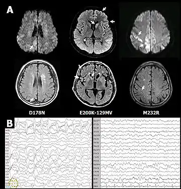 Описано более 20 мутаций гена, ассоциированных со следующими прионными заболеваниями: