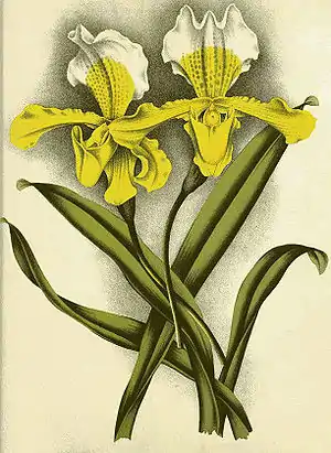 - Kumar M, Manilal KS, 1992 [1993], Floral morphology and anatomy of Paphiopedilum insigne and the taxonomic status of Cypripedioids (Orchidaceae). Phytomorphology. 42. 293—297.