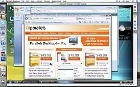![]() Скриншот Parallels Desktop 2.5 работающей на Mac OS X с запущенной Windows XP | |