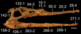 ![]() Череп ISI R42, образец, принадлежащий Parasuchus hislopi | |||||||||||||||||||||||||||||||||||||||||