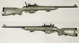 Ствол — плавающего типа. Приклад сделан из дерева. В затыльной части крепится амортизирующая прокладка. Снайперская винтовка имеет телескопический прицел, дистанционный барабанчик с градуировкой.