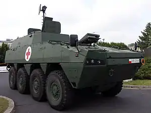 - Rosomak-WEM — бронированная медицинская машина.
