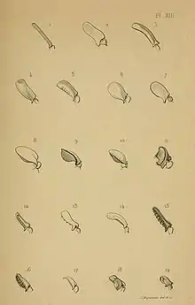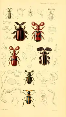 ![]() Таблица из монографии Louisa Péringueya, виды рода Paussus: 1) P. raffrayi 2) P. manicanus 3) P. marshalli 4) P. viator 5) P. barberi 6) P. concinnus 7) P. propinquus 8) P. arduus (1897)[2] | ||||||