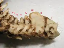 В отличие от Pedetes capensis, у этого вида срастаются второй и третий шейные позвонки.