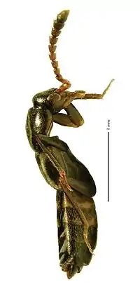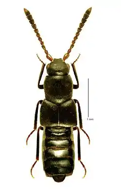 Длина вытянутого тела 3,4—7,0 мм (бока субпараллельные). Красновато-оранжевые, коричневые, чёрные. Усики 11-члениковые. Голова фронтально округлая,с затылочным швом, без шеи. Длина глаз составляет 0,35—0,56 от ширины головы. Переднеспинка и надкрылья покрыты щетинками. Задние крылья развиты. Формула лапок (число члеников в передних, средних и задних ногах): 4—5—5. Лигула без щетинок, но с сенсиллами. Жизненный цикл короткий: яйца развиваются 2 дня, личинки 1 стадии — 2—3 дня, личинки 2 стадии — 3—4 дня, куколки — 5—7 дней. Для многих изученных видов характерны мирмекофильные связи с муравьями: падальщики и хищники. Обнаружены на муравьиных тропинках, внутри или около муравейников Lasius fuliginosus, Lasius spathepus, Lasius fuji, Liometopum microcephalum, Formica rufa, Crematogaster, Tapinoma и других видов[2][3].