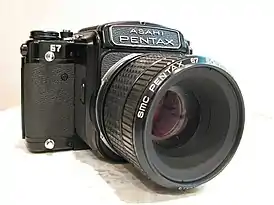 Pentax 67 — профессиональный среднеформатный однообъективный зеркальный фотоаппарат с ручной фокусировкой. Основа одноимённой фотосистемы. Рассчитан на роликовую плёнку типа 120 или плёнку типа 220. Выпускался с 1990 до 1999 года[1]. С производства снят, но и в настоящее время остаётся одной из самых надёжных и удобных профессиональных среднеформатных камер.
