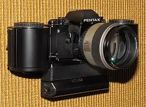 | Видоискатель | Зеркальный со сменными пентапризмами или шахтами. Увеличение 0.98x, поле зрения стандартного видоискателя FA-1 98% по горизонтали и 95% по вертикали. |