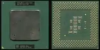 - Intel Celeron (Tualatin). В отличие от процессоров Pentium III на ядре Tualatin, Celeron, представлявший собой Pentium III с 256 Кб кэш-памяти второго уровня и внешней частотой 100 МГц, получил широкое распространение, в частности, среди оверклокеров: так, например, процессоры Celeron 1.0A и 1.1A легко разгонялись до 1333 и 1466 МГц соответственно путём увеличения частоты шины до 133 МГц[17]. Уступал процессорам Pentium III и Pentium III-S за счёт менее скоростной системной шины, увеличенной латентности кэш-памяти второго уровня и меньшего её объёма (в случае с Pentium III-S), во многих задачах также уступал своим конкурентам — AMD Athlon XP и Duron[18][19].