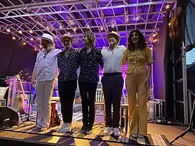 Музыканты, сфотографированные во время проведения гастрольного тура в Тюлёсанде в июле 2021 года: