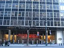 Pfizer, Inc. (произносится «Файзер» /ˈfaɪzər/[7][8], официально «Пфайзер»[9][10][11][12]) — американская транснациональная фармацевтическая компания, крупнейшая в мире. Компания производила самый популярный в мире препарат липитор (липримар, аторвастатин); этот препарат используется для снижения уровня холестерина в крови, за период с 1997 по 2012 год его было продано на 125 млрд долларов[13][14]. Также компания продаёт следующие популярные лекарственные средства: лирика, дифлюкан, зитромакс, виагра, целебрекс, сермион, достинекс, чампикс. Акции компании Pfizer в 2004 году включены в базу расчёта Промышленного индекса Доу Джонса, а в 2020 году исключены из неё[15]. Штаб-квартира расположена в Нью-Йорке, а главный исследовательский центр находится в Гротоне, штат Коннектикут.