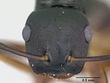 Среднего размера мономорфные муравьи чёрного цвета, тело гладкое. Заднегрудка округлая без проподеальных шипиков. Усики длинные, у самок и рабочих 12-члениковые (у самцов усики состоят из 13 сегментов). Жвалы рабочих с 5 зубцами. Нижнечелюстные щупики 6-члениковые, нижнегубные щупики состоят из 4 сегментов. Голени средних и задних ног с одной апикальной шпорой. Стебелёк между грудкой и брюшком состоит из одного сегмента (петиоль) [5].