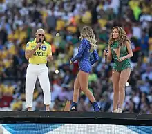 Питбуль, Дженнифер Лопес и Клаудия Лейтте исполнили песню "We Are One"на церемонии открытия чемпионата мира по футболу 2014 года.