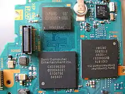 ![]() Основной CPU, мультимедиа-процессор PSP и NAND-флеш-память для хранения системной прошивки (TA-079) |