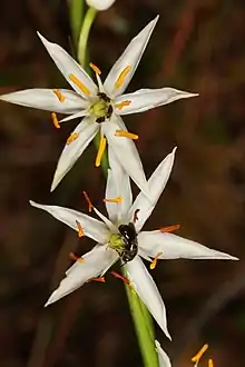 Соцветие кистевидное, терминальное. Цветки с шестью лепестками, появляются постепенно[5].