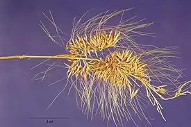 Многолетнее травянистое растение, образующее стебли до метра высотой. Соцветие — метёлковидный колос до 15—16 см длиной и несколько см в ширину. Оно пушистое, иногда пурпурного оттенка из-за длинных тёмных остей.