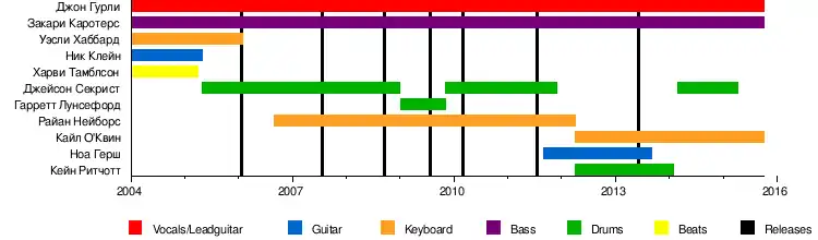 - Кейн Ритчотт — ударные, перкуссия, бэк-вокал (2012–2016, 2017–наст. вр.)