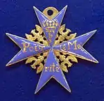 Pour le Mérite (с фр. — «За заслуги») — орден, бывший высшей военной наградой Пруссии до конца Первой мировой войны. Неофициально назывался «Голубой Макс» (нем. Blauer Max).