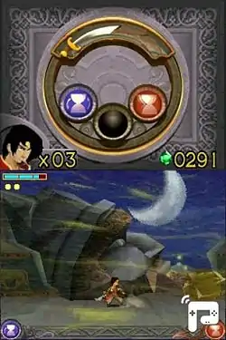 Представляет собой портативный 2D-скроллер, аналогичный предыдущей игре серии для DS — Prince of Persia: The Fallen King[17] Игрок управляет только с помощью стилуса, ни одна кнопка не используется. Для совершения манёвра игрок должен передвинуть стилус в ту сторону относительно Принца, куда игрок хочет переместить героя. Чтобы пробежаться по стене, игрок должен начертить стилусом путь по нужной части стены. Чтобы совершить атаку, игрок должен перечеркнуть врага стилусом по диагонали.[18] Игрок может управлять силой песков с помощью стилуса, например, если провести несколько раз по песочному фонтану, то он превращается в колонну, с которой можно прыгнуть через пропасть. Если игрок умирает, то на сенсорном экране появляются песочные часы, при нажатии на которые время начнёт проматываться назад. Кроме того, игрок может замедлять время, если ловушки движутся слишком быстро для того, чтобы Принц смог их пройти.
