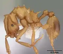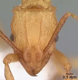 Мелкие земляные муравьи желтовато-коричневого цвета (самки и самцы тёмно-бурые) с многочисленными шипиками на груди. Заднегрудка с двумя длинными проподеальными шипиками. Усики длинные, у самок и рабочих 12-члениковые, булава 3-члениковая. Жвалы рабочих с 4—5 зубцами. Нижнечелюстные щупики 3-члениковые, нижнегубные щупики состоят из 2 сегментов. Голени средних и задних ног без апикальных шпор. Стебелёк между грудкой и брюшком состоит из двух сегментов (петиоль + постпетиоль) [3].