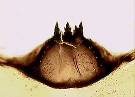 ![]() Зубцы субментума личинки рода Prosimulium | ||||||||||